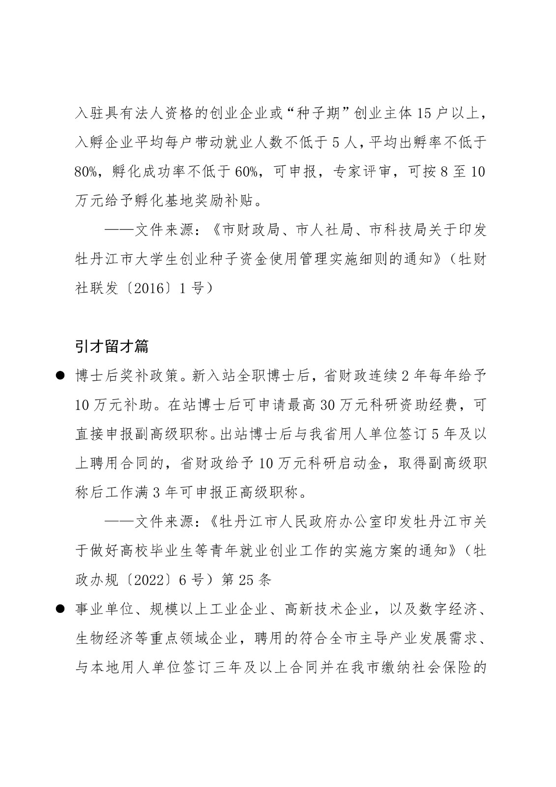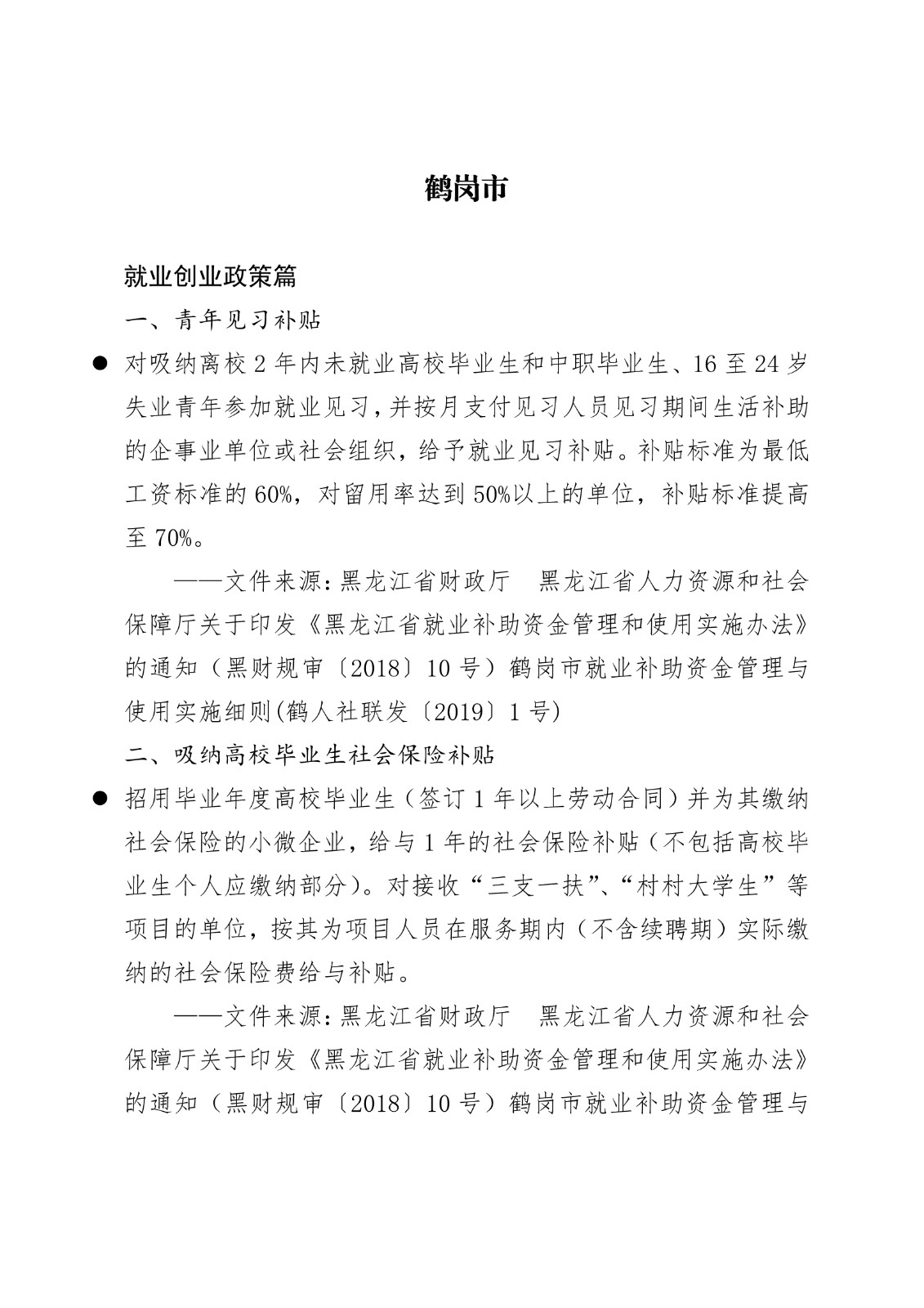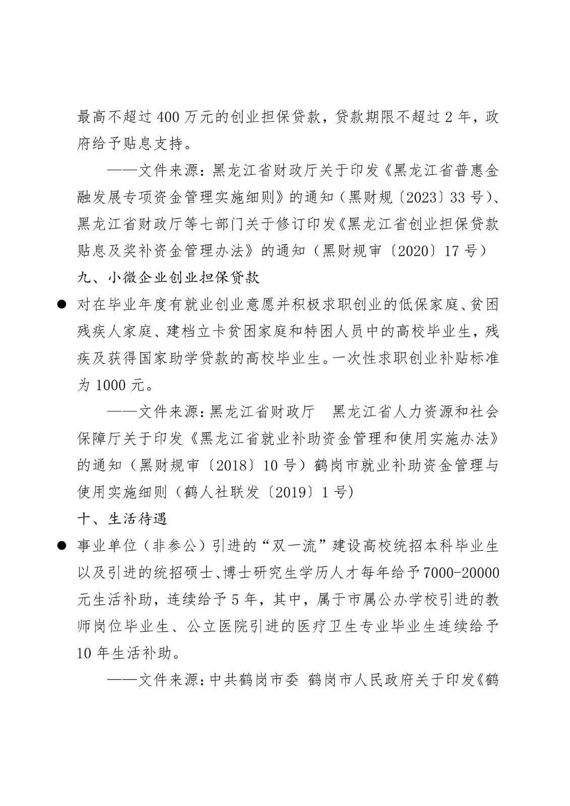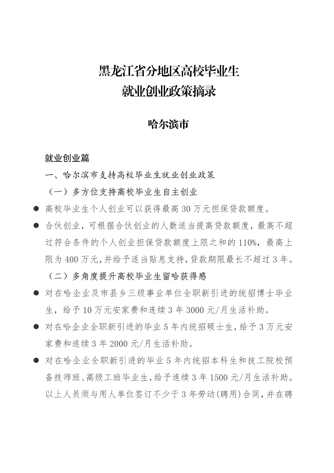 黑龙江省各地市高校毕业生就业创业政策摘录.pd
