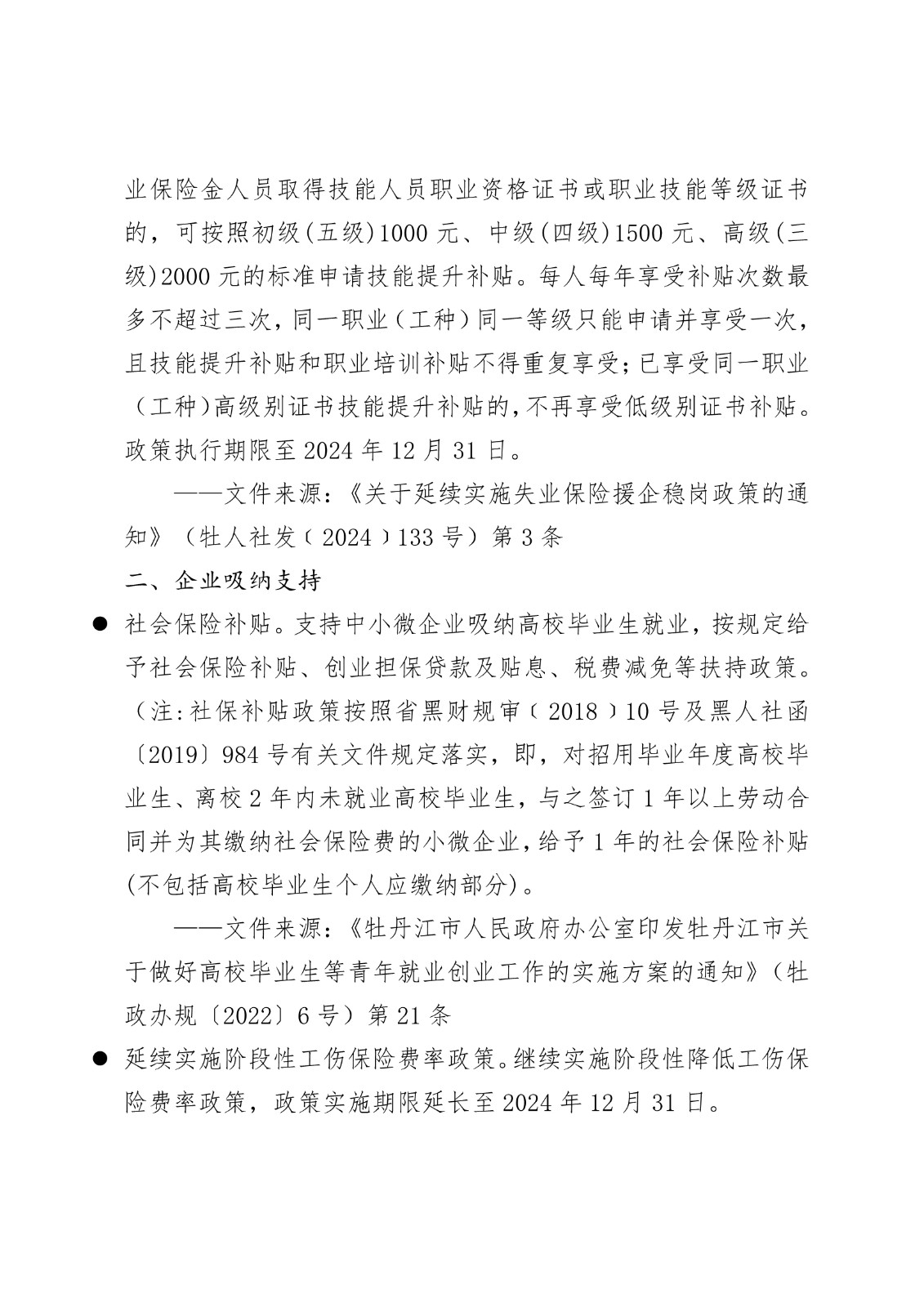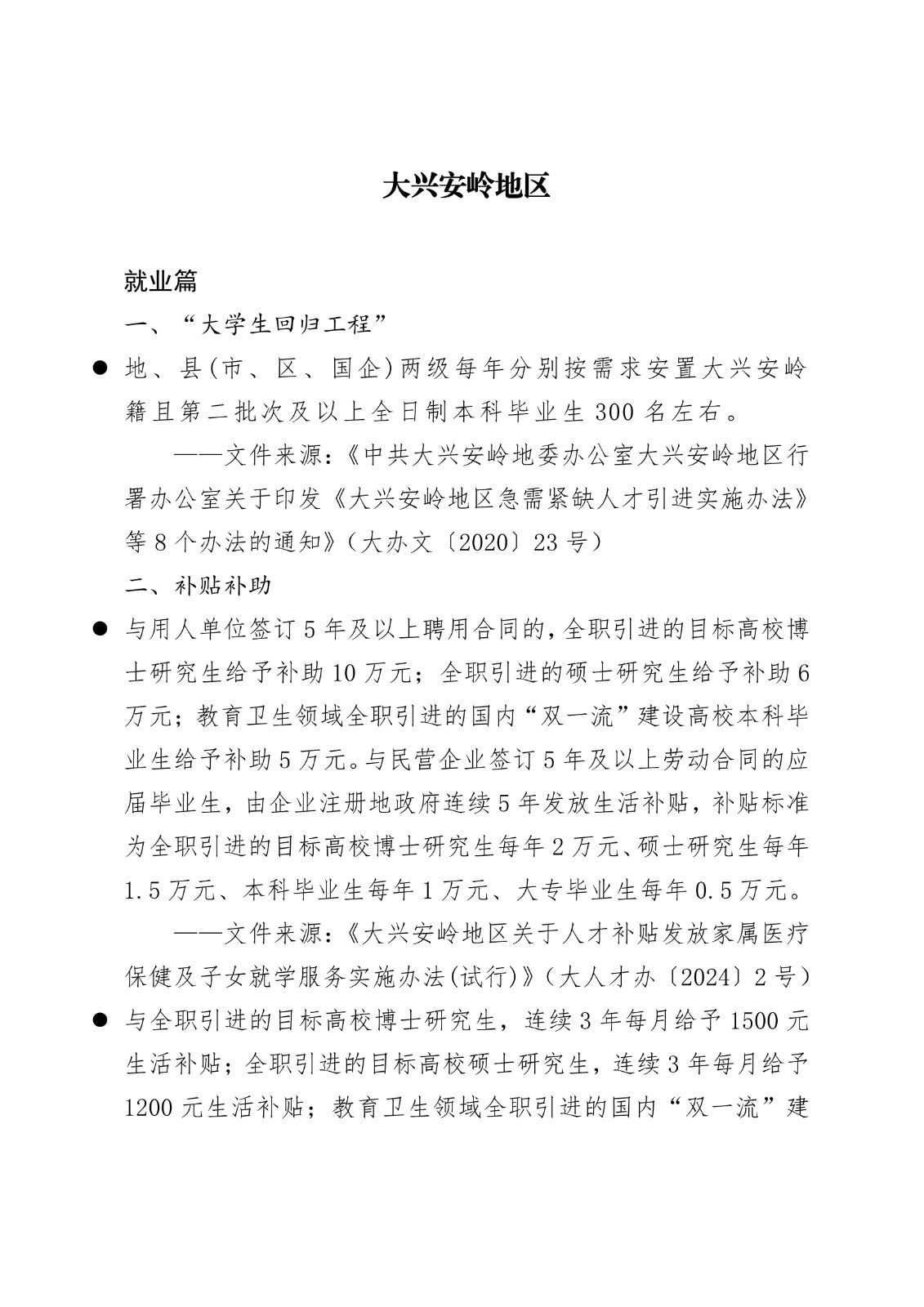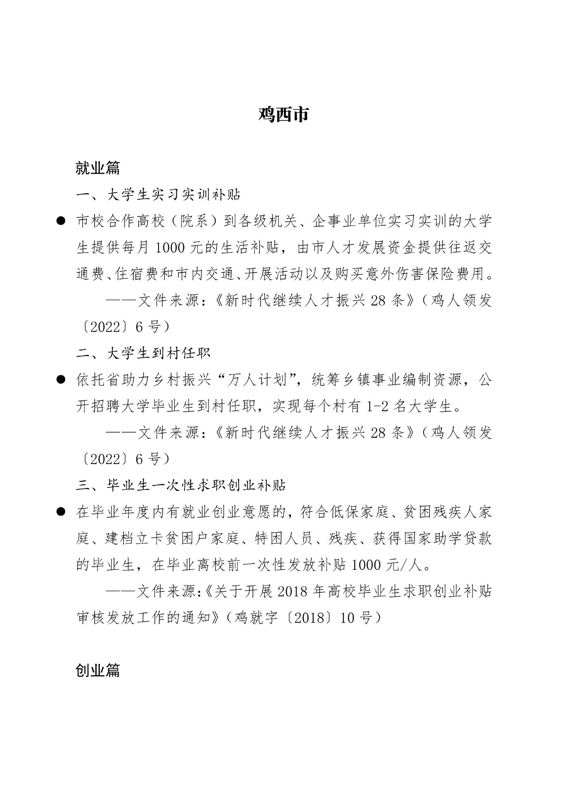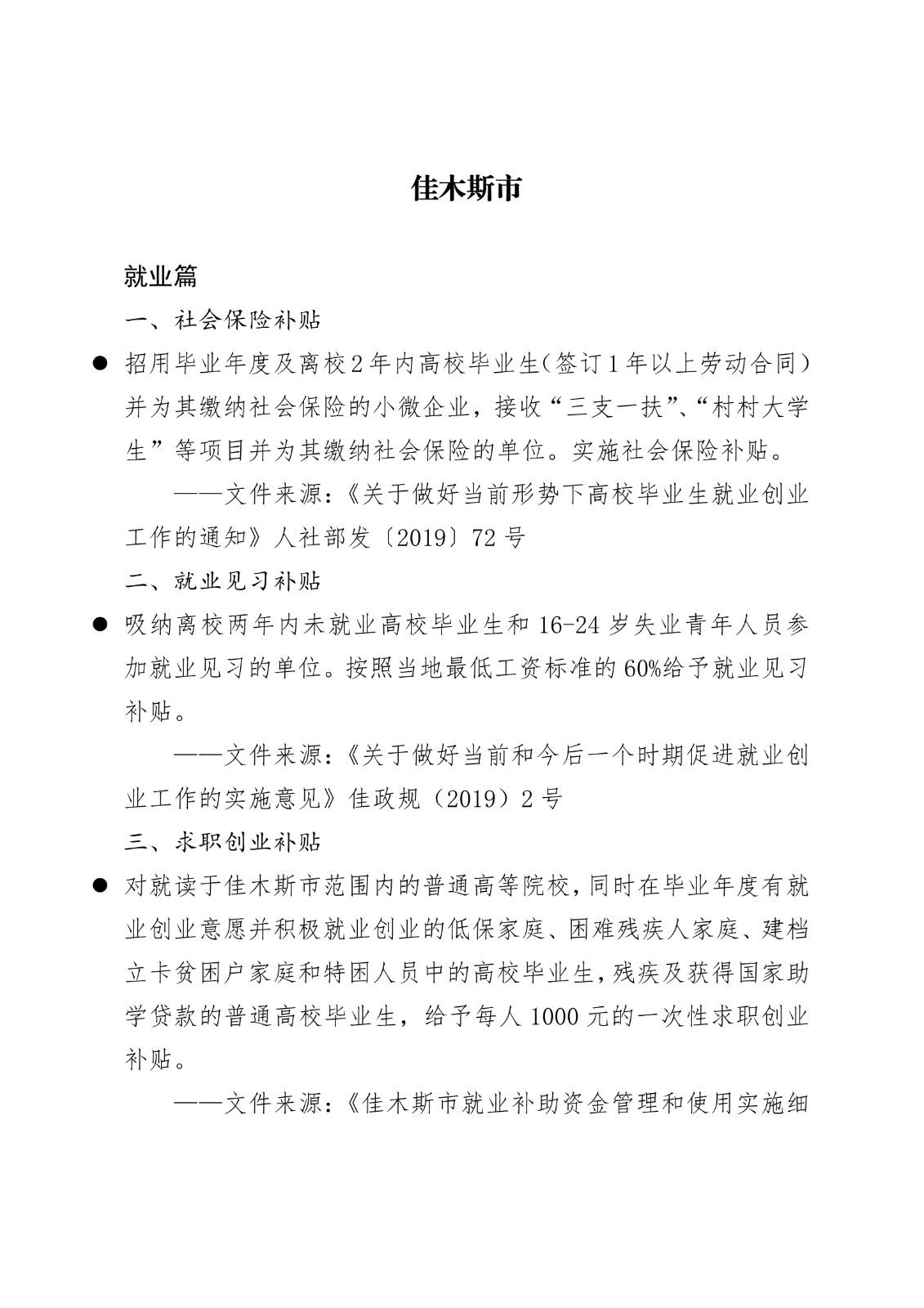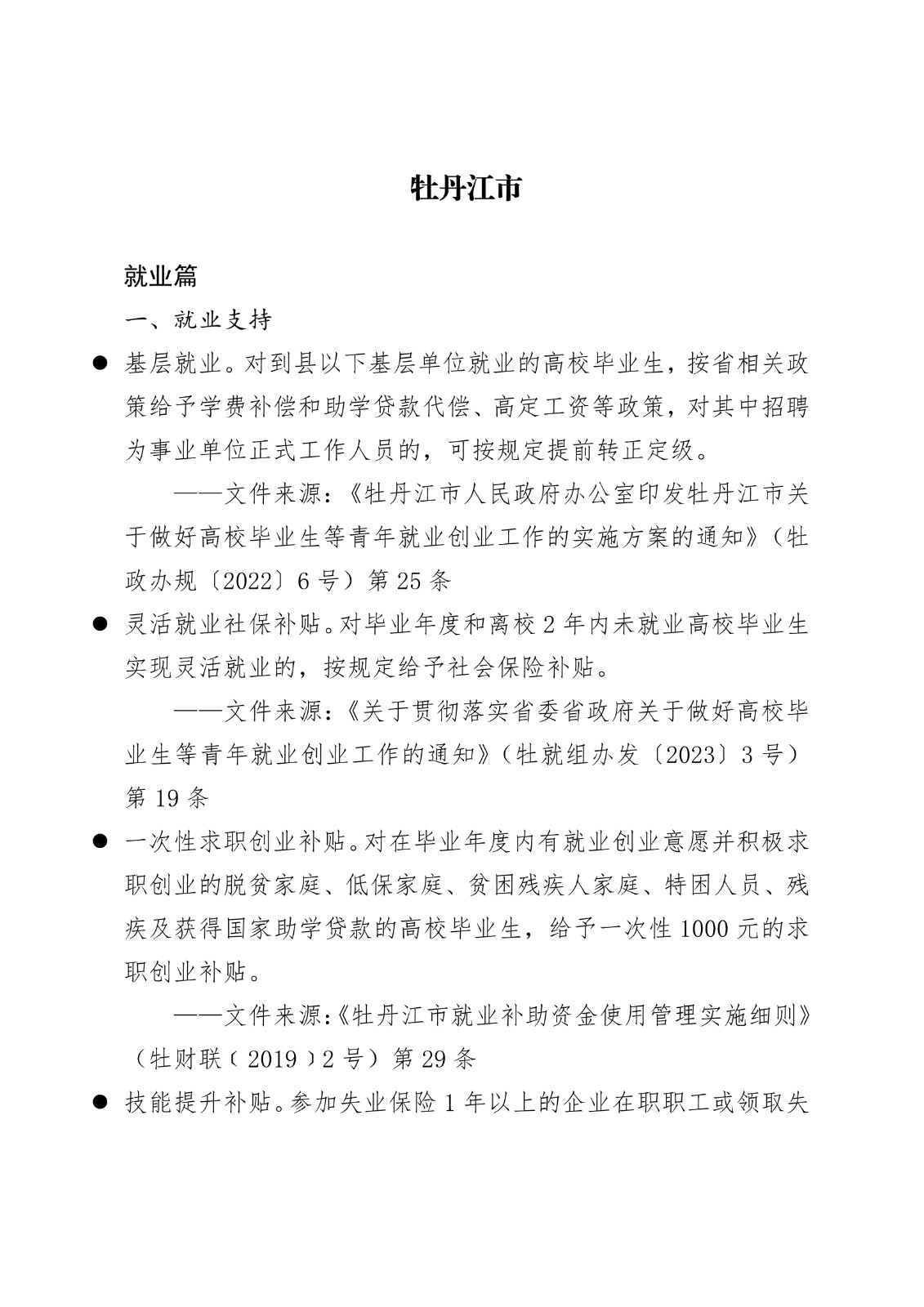 黑龙江省各地市高校毕业生就业创业政策摘录.pd
