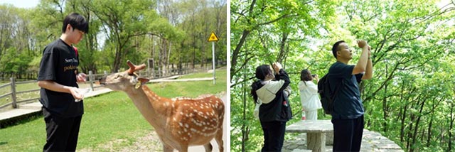 在平山鹿苑景区,优雅的梅花鹿群如林间精灵。环境艺术设计专业的师生们不再满足于单纯的形态记录,而是细致分析鹿群活动路线与草场、林带、水源的空间关系。对于环艺系学生来说,这是一次难得的实践机会,因为鹿苑的生态布局本身就是精妙的设计语言,未来他们为城市公园或生态社区做规划时,这种“生命友好型”的空间逻辑就是对他们最好的教学示范。自然在此刻超越了审美对象,成为空间设计思维的活态教材。