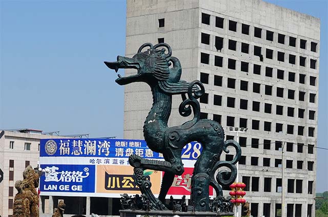 刚一走进阿城城区,一座巨大的铜座龙雕像便矗立在人们的眼前。这里就是阿城的铜座龙转盘——它姿态昂然,线条遒劲流畅,仿佛下一秒便要挣脱历史的尘封腾空而起,无声地释放着女真先民开疆拓土的磅礴气韵。