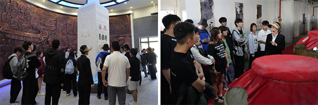 踏入玉泉酒文化博物馆,馥郁醇厚的酒香便如可呼吸的历史般弥漫开来,浸润着每一寸空间。阵列如林的巨大陶坛静默矗立,粗粝的坛体铭刻着时光流转的痕迹;坛内封存着岁月、微生物与匠心共同书写的生命之源密码。在这里,视觉传达与产品设计专业的师生们,正以敏锐的设计眼光,深度挖掘玉泉品牌的文化富矿,寻求传统酒韵与现代消费审美的创新连接点。