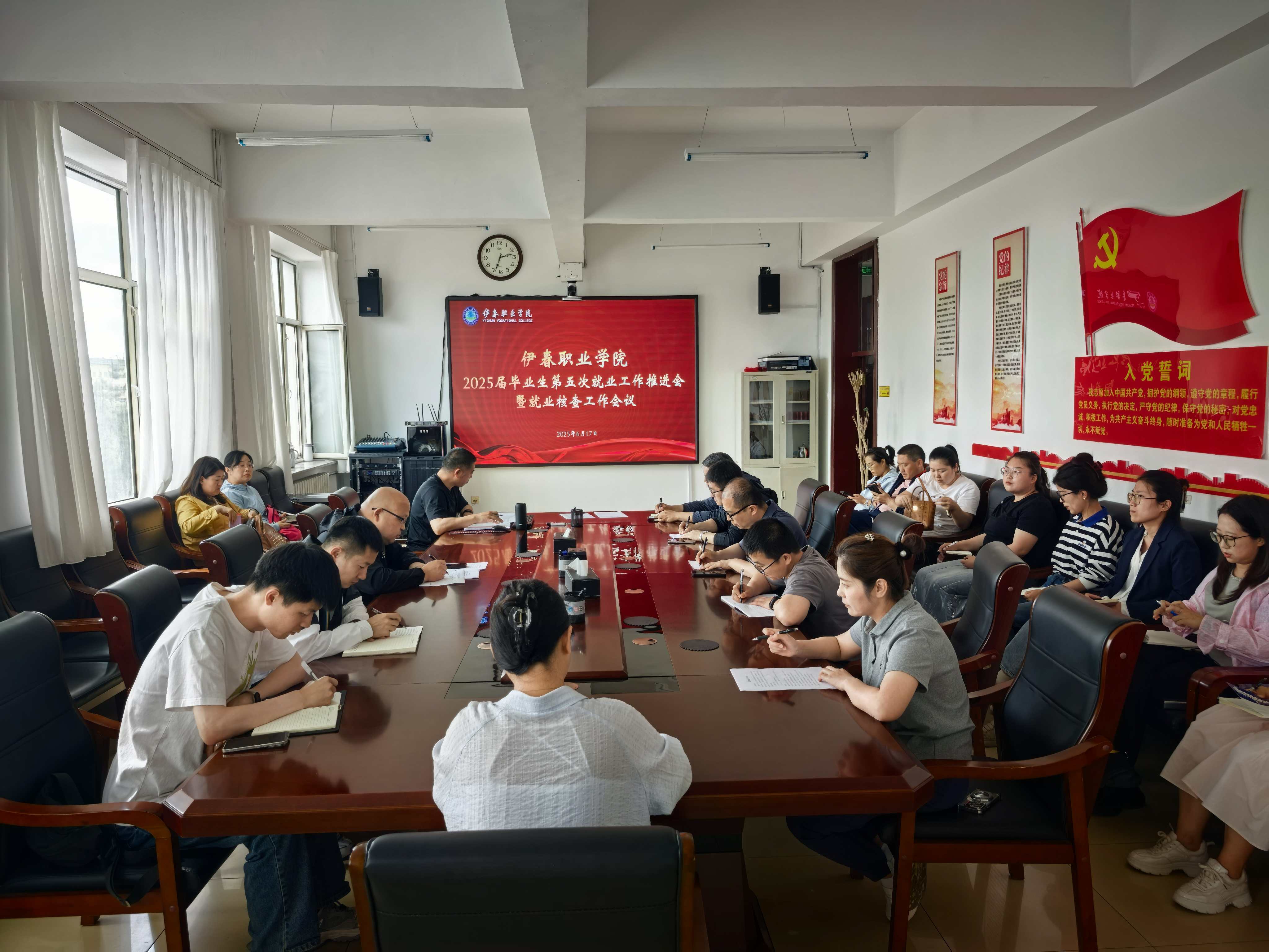 为深入学习贯彻习近平总书记关于高校毕业生就业工作的重要指示批示精神,贯彻党中央、国务院关于高校毕业生就业创业工作决策部署,全面落实省委、省政府和教育部近期有关工作要求,抢抓关键冲刺期,促进毕业生高质量充分就业,6月17日,伊春职业学院召开第五次就业工作推进会暨就业数据监测专题会议。招生就业处处长王增伟、各二级学院党支部副书记、毕业班辅导员、招生就业处相关工作人员参加会议。