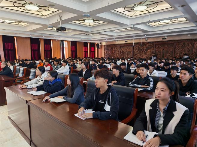 为深入贯彻落实立德树人根本任务,帮助2025级本科生尽早树立就业意识,科学规划学业与职业生涯,奠定全面成长成才的基础,我校于2025年10月9日12时举办2025级本科生“生涯入学教育第一课”活动。2025级本科生代表230余名学生参加活动,招生就业处相关人员出席活动。