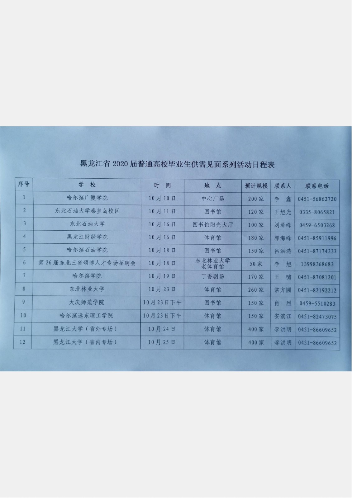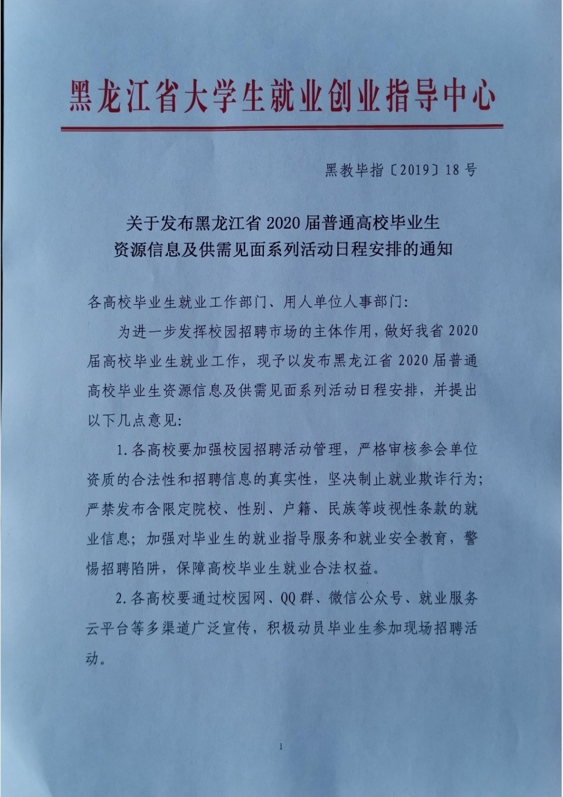 关于发布黑龙江省2020届普通高校毕业生资源信息及供需见面系列活动日程安排的通知