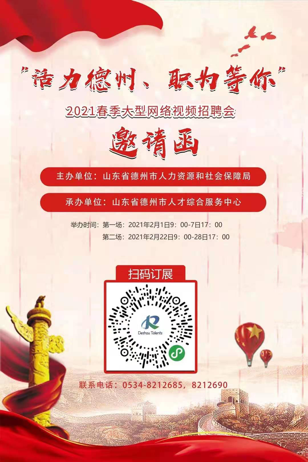“活力德州,职为等你”2021春季大型网络视频招聘会